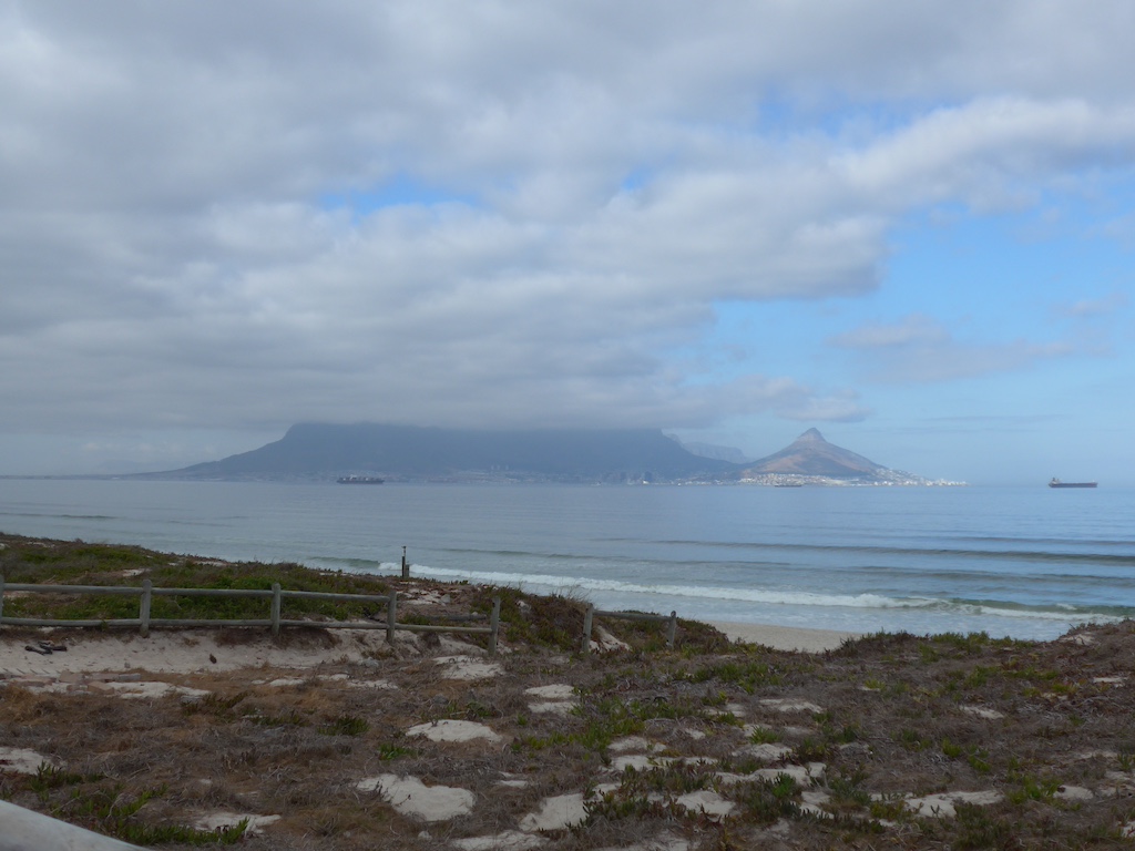ケープタウンを出発してすぐでしたが、ケープタウンといえば、”テーブルマウンテン”と言えるほどの山が綺麗に望めるビーチ沿いのPhotoスポットで、一旦トラックから降りて、写真撮影。Table viewエリアから、テーブルマウンテンを望む写真をとってみた!が。。天候に恵まれず綺麗なテーブルマウンテンの名前の由来でもある、フラットな形がが映らなかった(笑)・・・